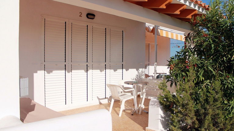 Los Bungalows disponen de terraza amueblada, aire acondicionado/calefacción, ventilador, teléfono, televisión vía satélite (con canales españoles, italianos y alemanes), nevera, microondas, cocina, caja fuerte (de alquiler) y baño completo (con ducha o bañera).